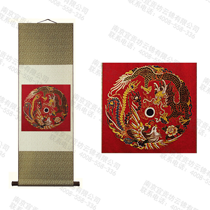 名称:龙凤呈祥尺寸:35*35cm材料:100%桑蚕丝寓意:此款为云锦龙凤呈祥卷轴,龙凤呈祥:图案为一龙一凤。龙凤都是人们心中的祥兽瑞鸟,哪里出现龙,哪里便有凤来仪,象征着天下太平,五谷丰登。龙是力量的象征,凤是美丽的象征。龙和凤的结合,是力和美的结合;龙和凤的对应,是力和美的对应,富贵吉祥的征兆。
