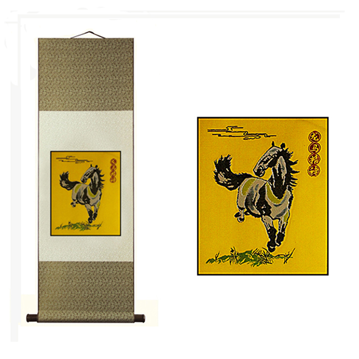 二则类蚕丝底“马到成功”卷轴挂画,是居家用品,送礼之首选!
