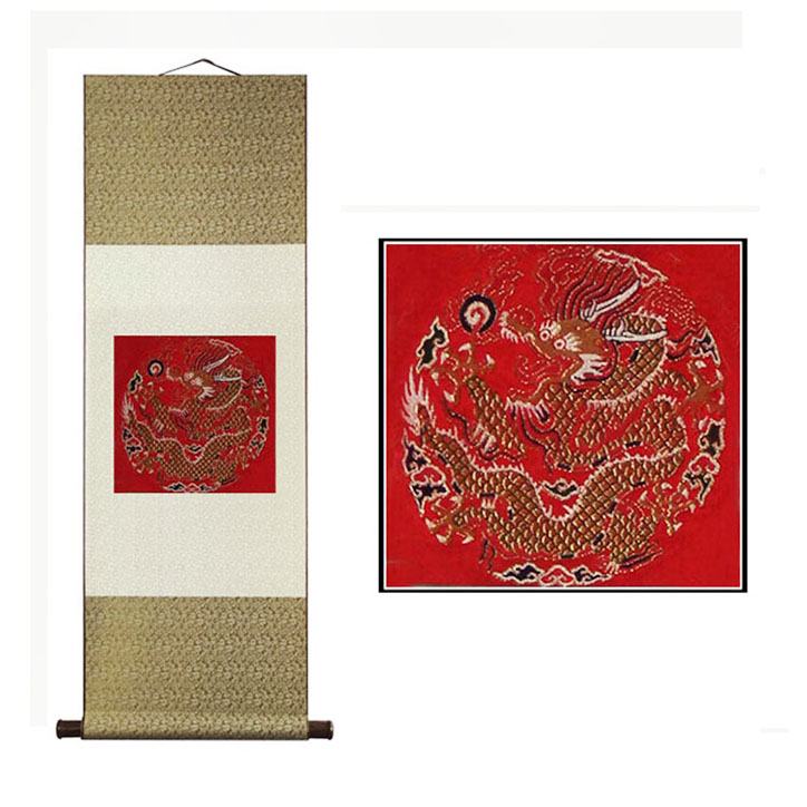 以纯桑蚕丝为底,图案为“团龙”——龙是华夏民族共同的图腾,历来代表一种至高无上的权势和威力,为“九五至尊”的象征,江苏省委书记李源潮各赠云锦团龙一幅,象征着两岸人民的和平、团圆。 云锦团龙,以各种金线、银线和高级丝绒为原料,运用云锦的通经断纬技法妆织而成,为传统云锦图案中的经典之作。为馈赠收藏之极品。